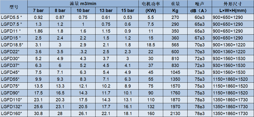 LGFD EVO-NK系列高端螺桿壓縮機(jī)參數(shù)表