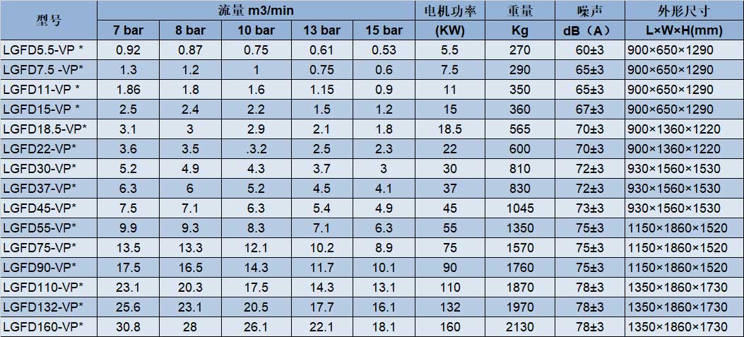 LGFD-VP系列變頻螺桿壓縮機技術參數