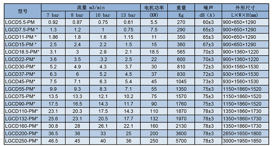 LGCD-PM系列永磁變頻螺桿壓縮機參數